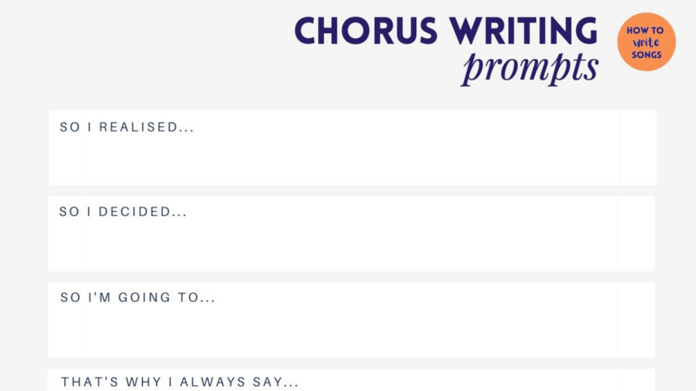 A single sheet PDF of 10 Chorus Writing prompts